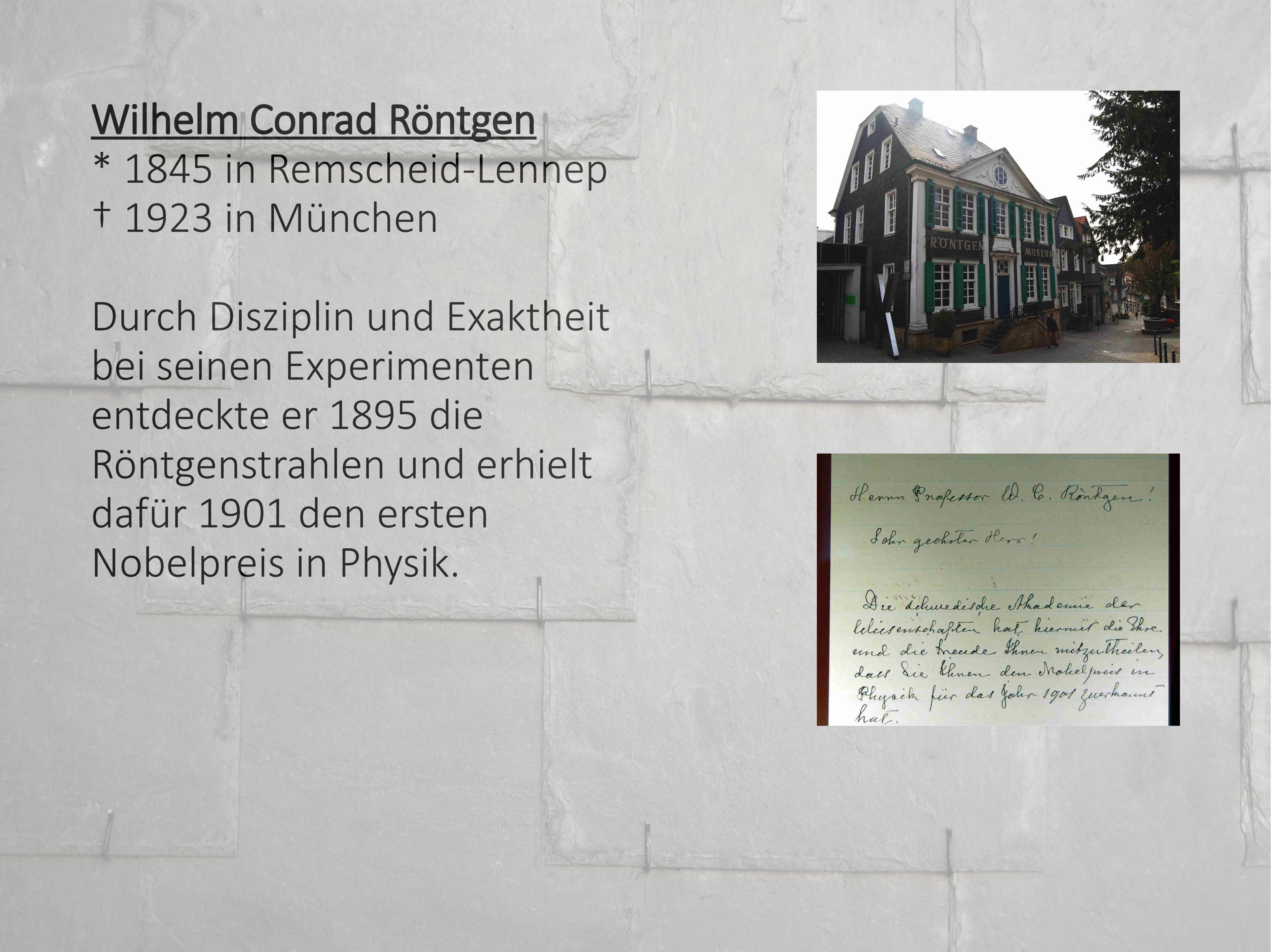 Am Beispiel von Remscheid als Geburtsort des Nobelpreisträgers Wilhelm Conrad Röntgen werden Fragen zur Praxis der Nobelpreisverleihung gestellt und alternative Vorschläge unterbreitet.