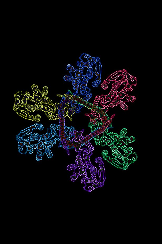 Das Bild ist im Rahmen meiner Artist Residency an der Constructor University Bremen entstanden und stellt eine Teilstruktur des Marburg-Virus dar.