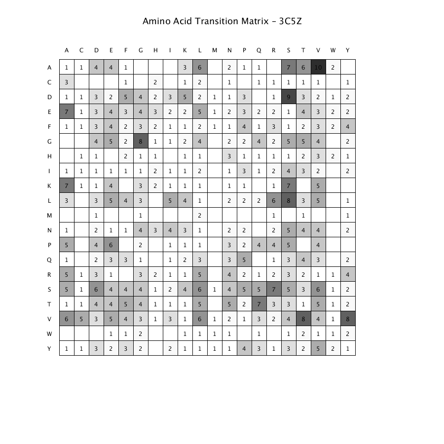 Die Vorgänger-Nachfolger-Matrizen zeigen nun die „besten Freunde“ für verschiedene MHC-I-Proteine.