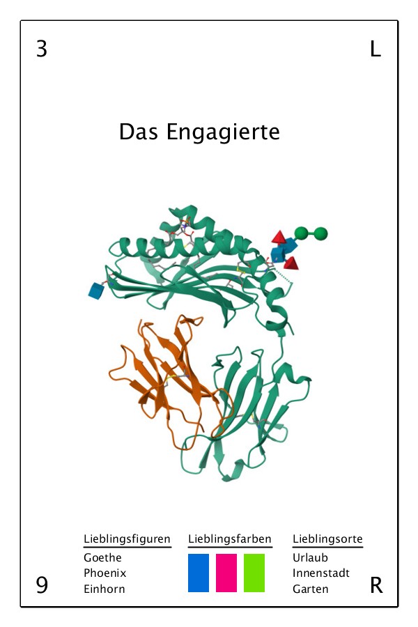 Diese Karten sind aus Abbildungen von Proteinen der Datenbank https://www.rcsb.org/ entstanden und greifen das Motiv des Arcanum (lat. für Geheimnis oder Unsichtbares) auf, das auch im Tarot-Kontext verwendet wird.