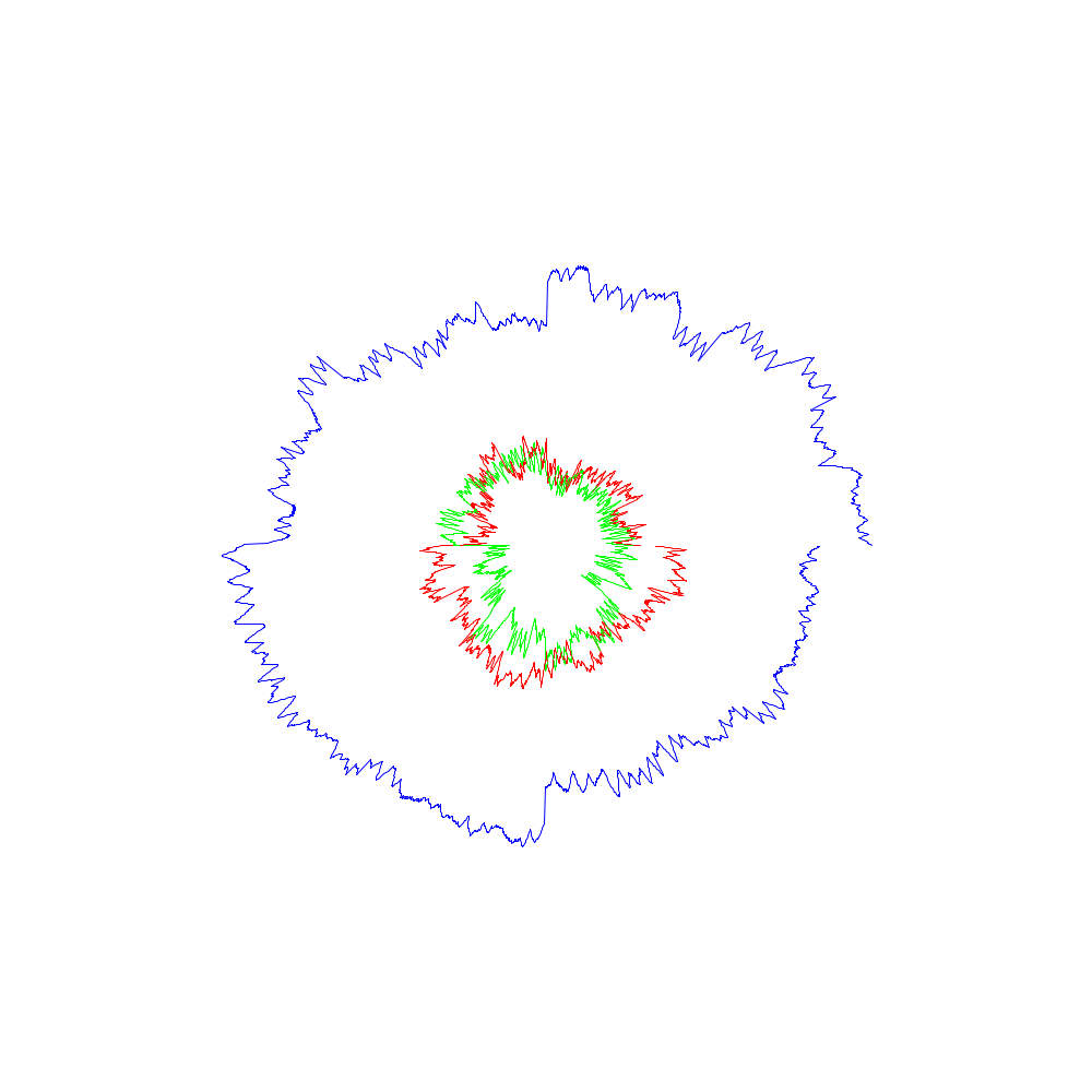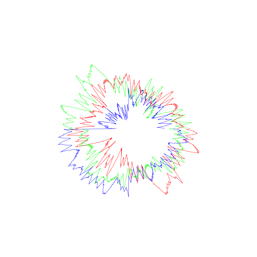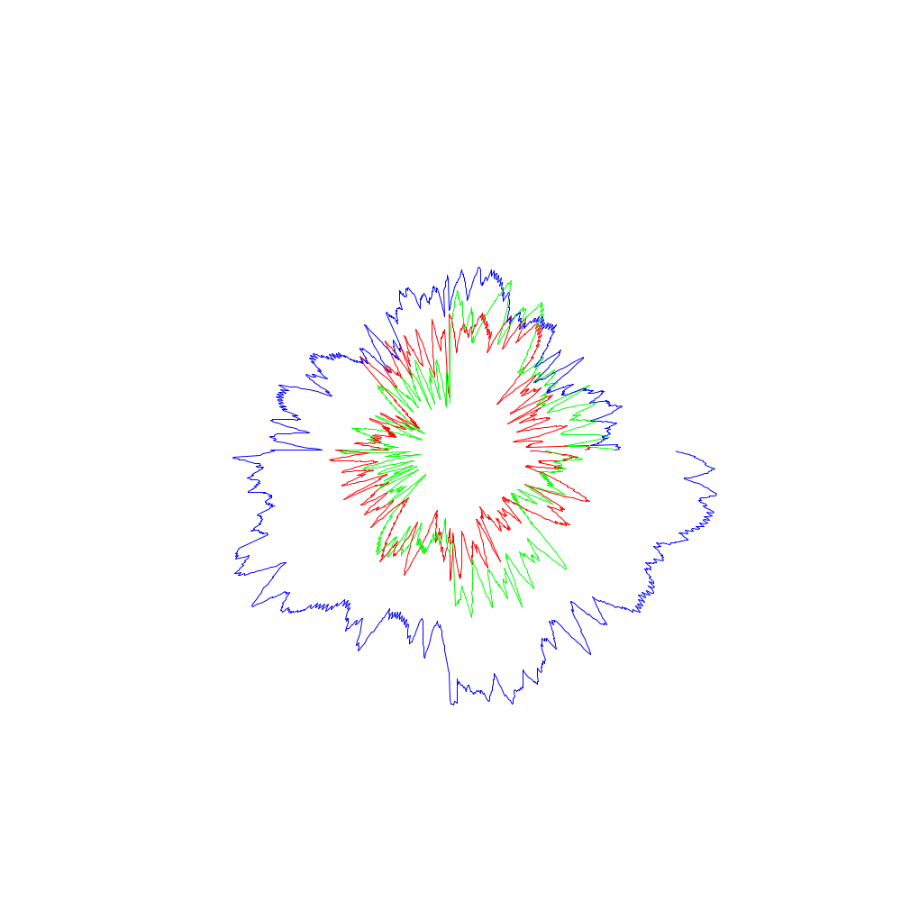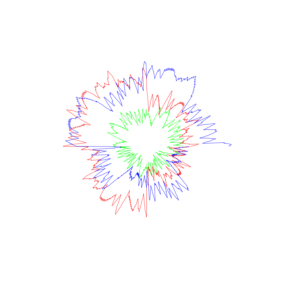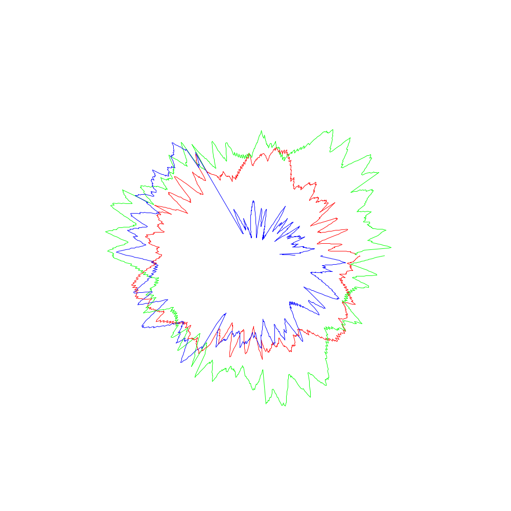 Die roten Linien entsprechen dabei den x-Koordinaten, die grünen den y- und die blauen den z-Werten.