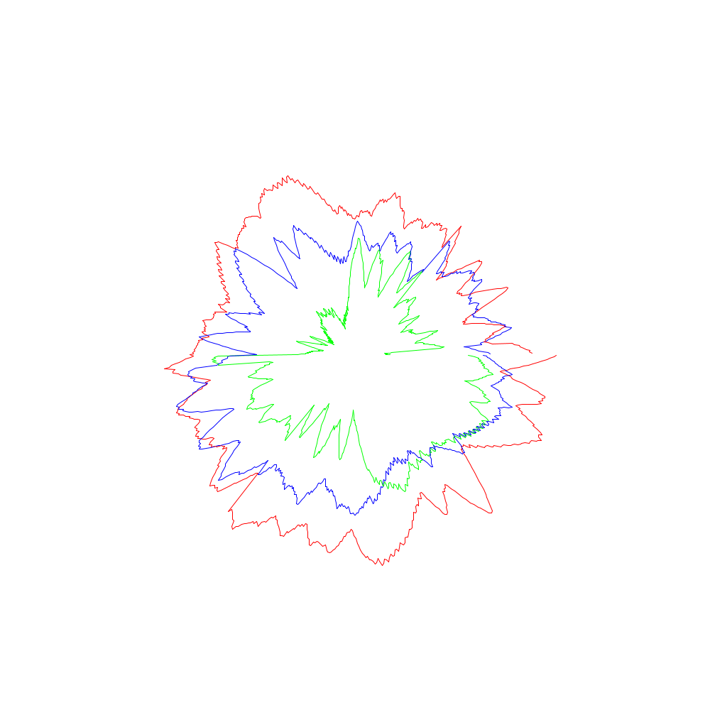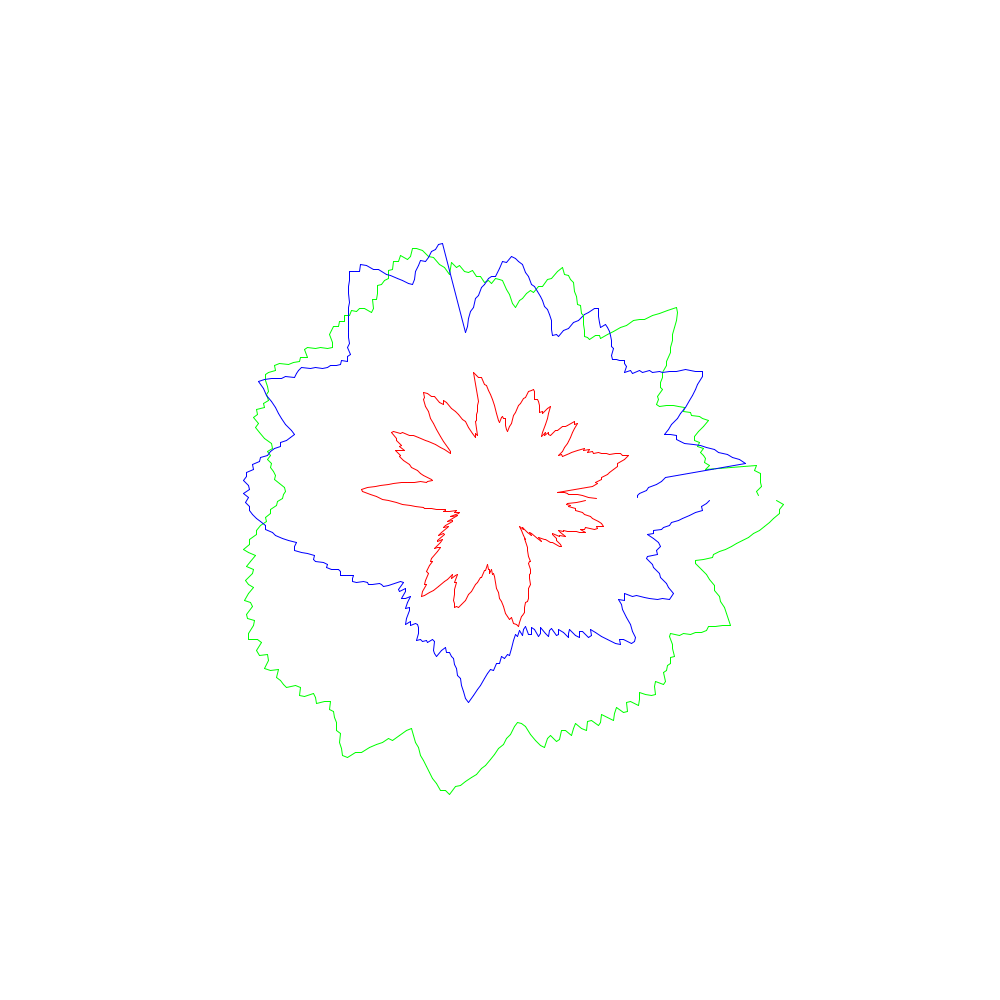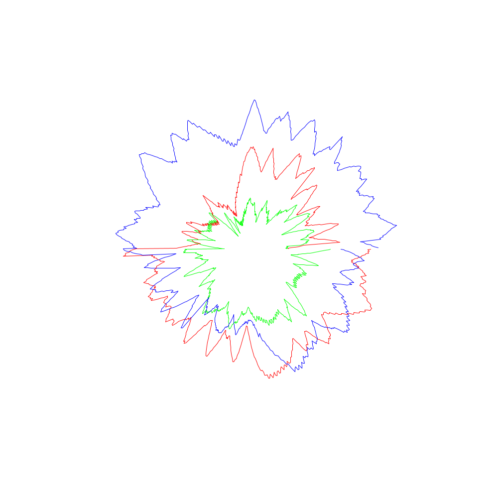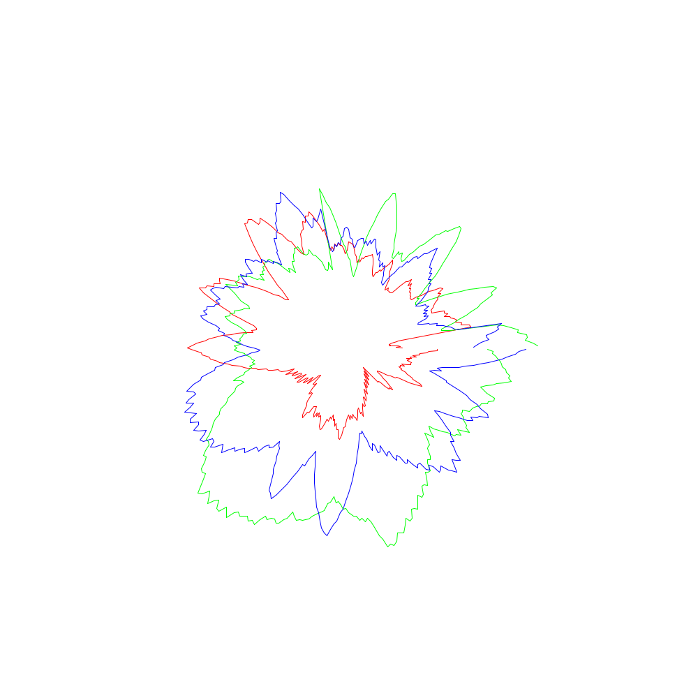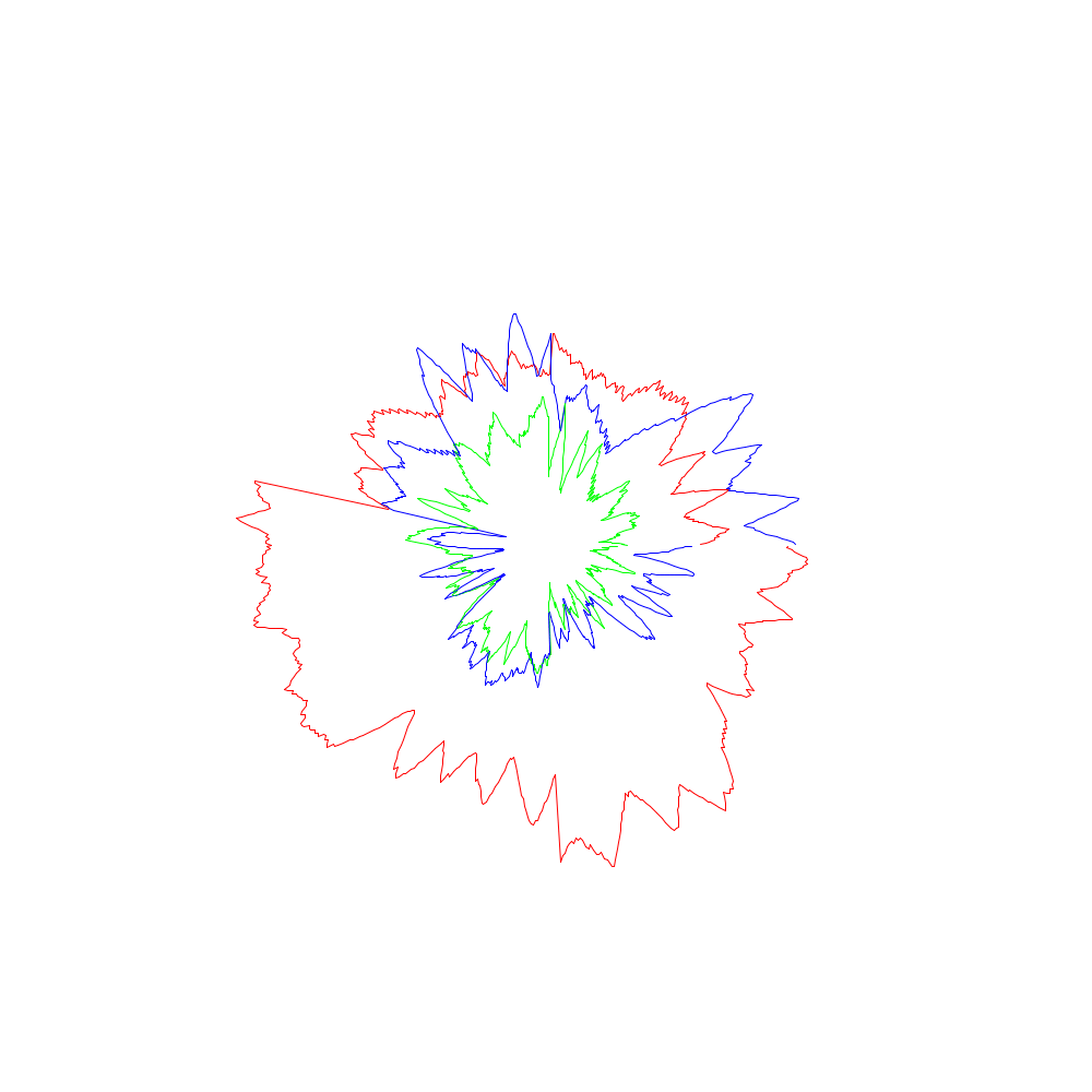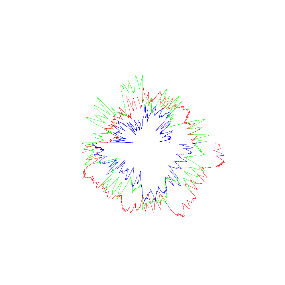 Die roten Linien entsprechen dabei den x-Koordinaten, die grünen den y- und die blauen den z-Werten.