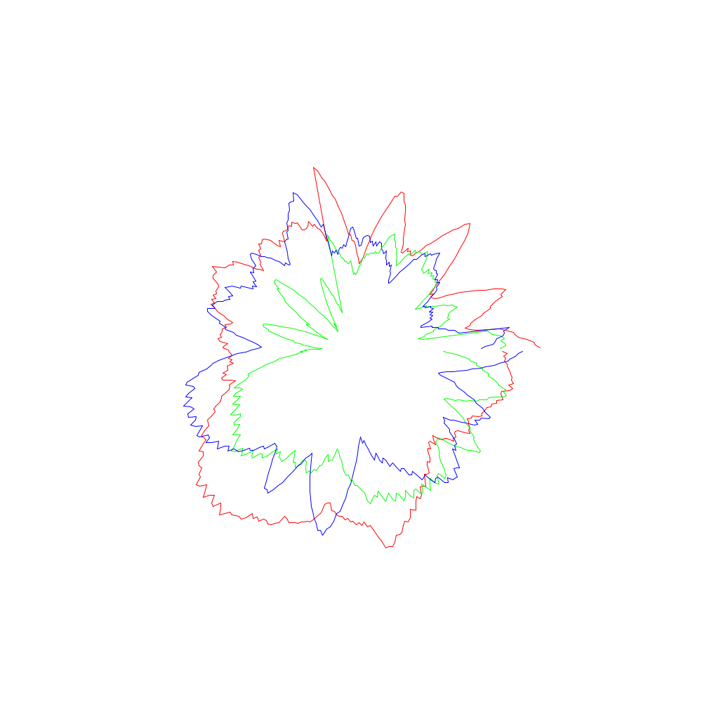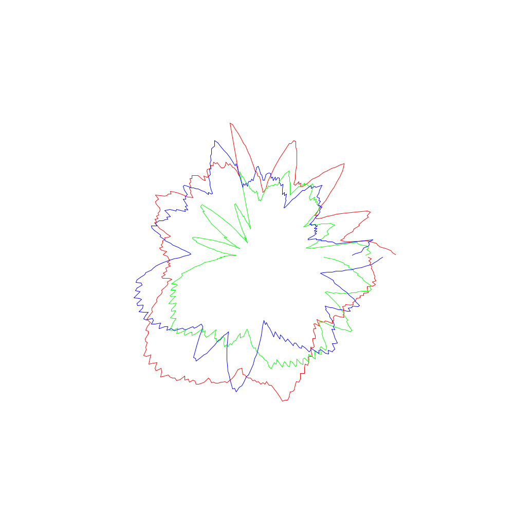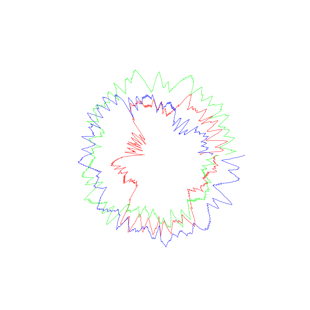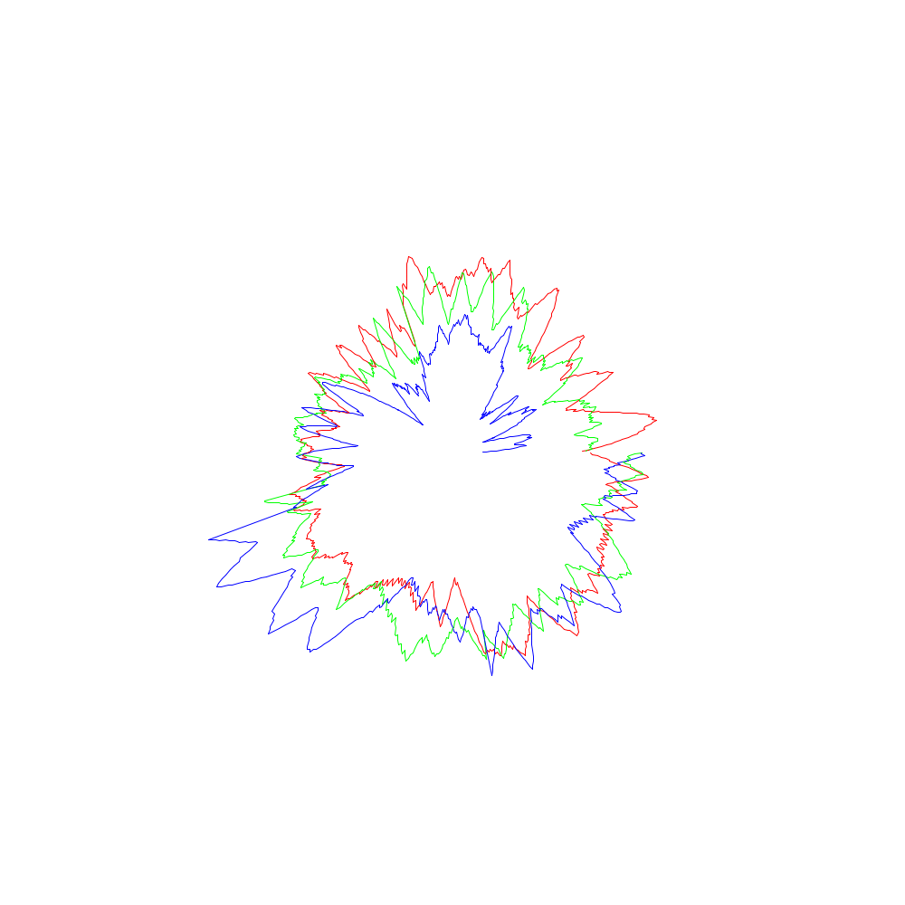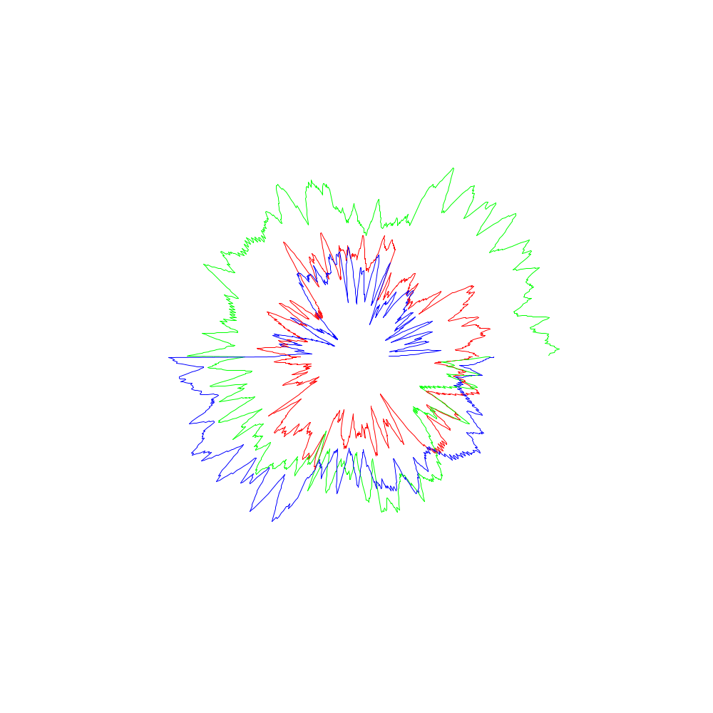 Die roten Linien entsprechen dabei den x-Koordinaten, die grünen den y- und die blauen den z-Werten.