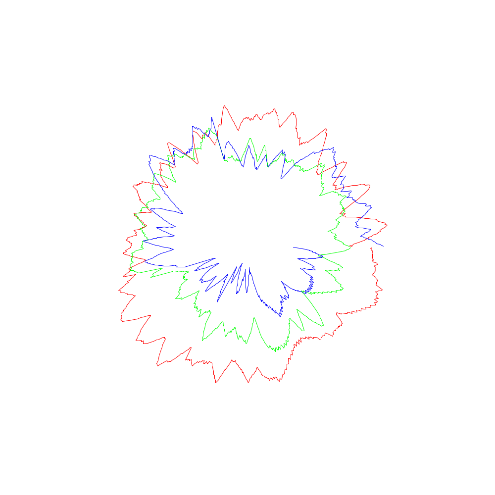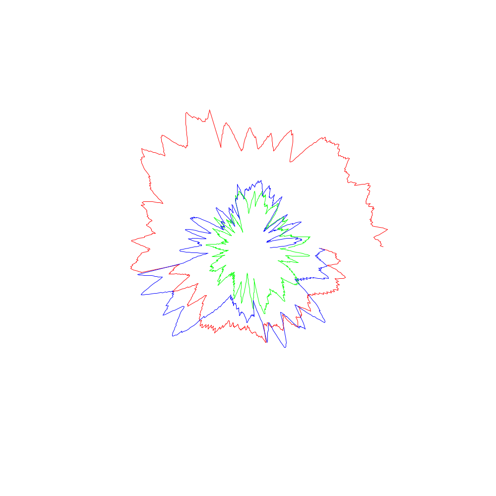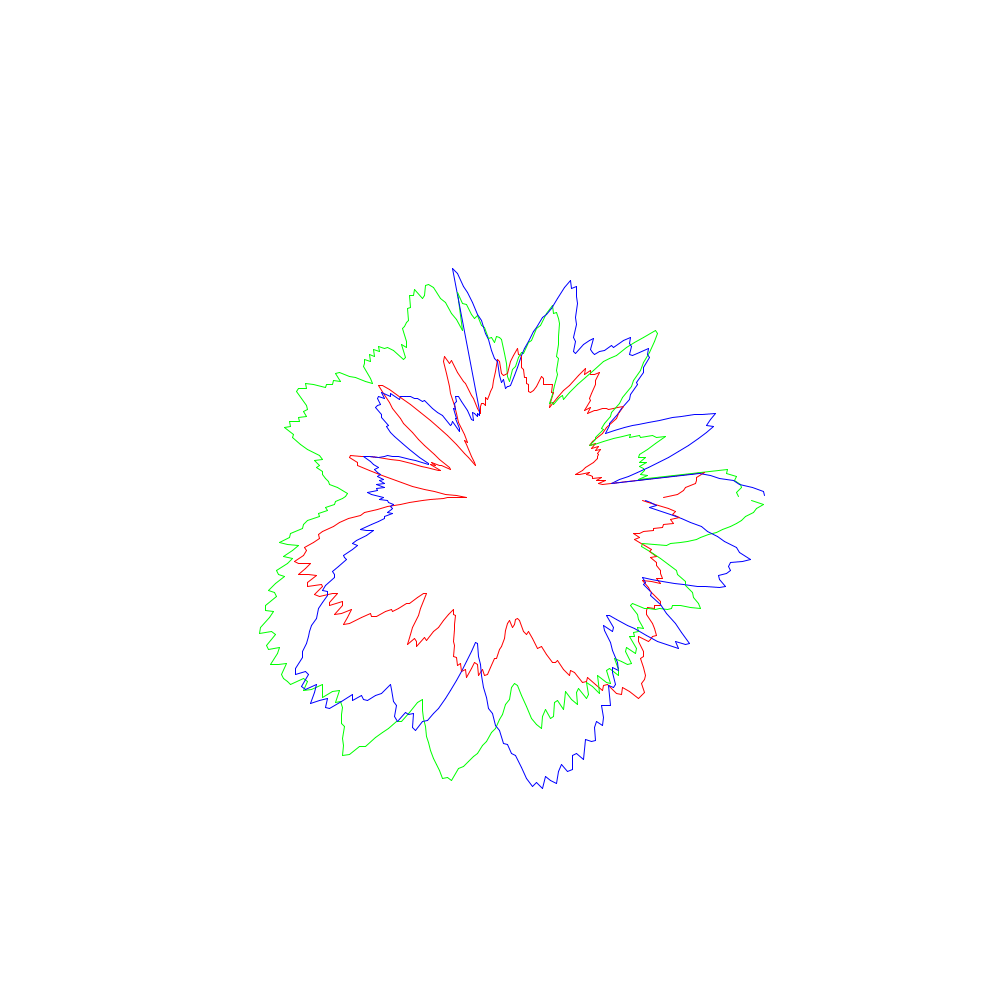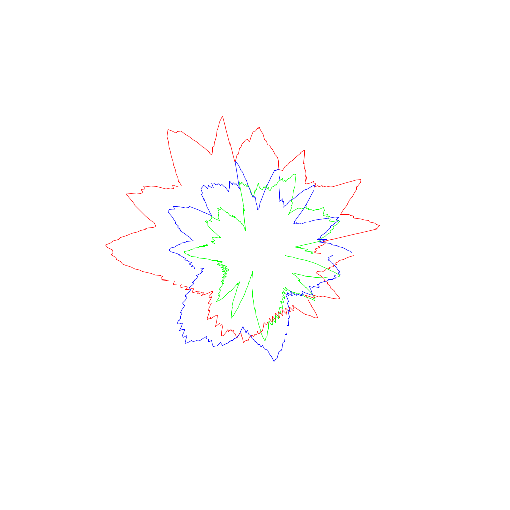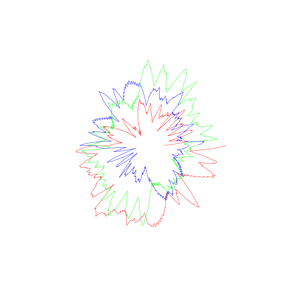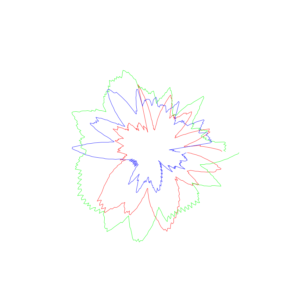 Die roten Linien entsprechen dabei den x-Koordinaten, die grünen den y- und die blauen den z-Werten.