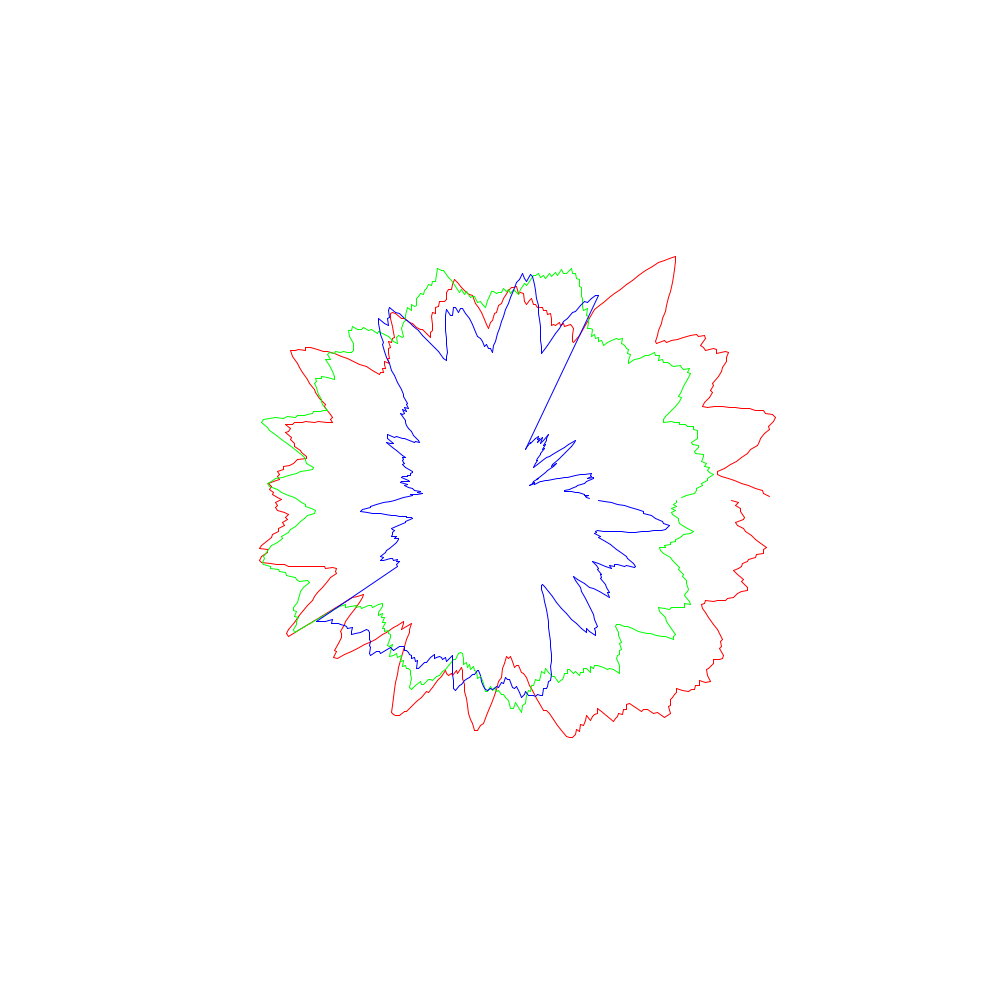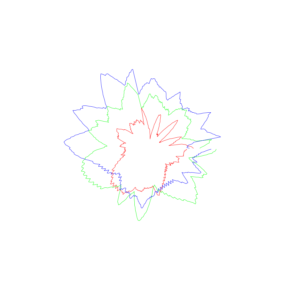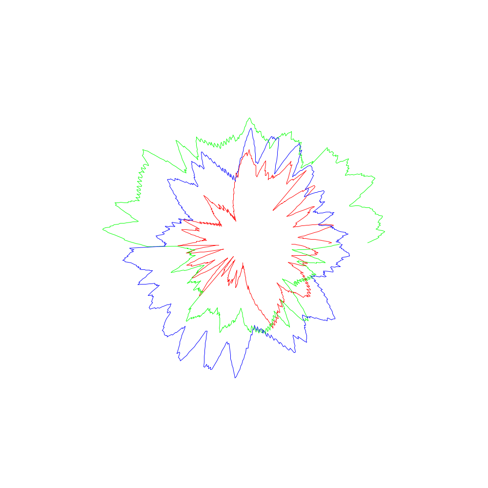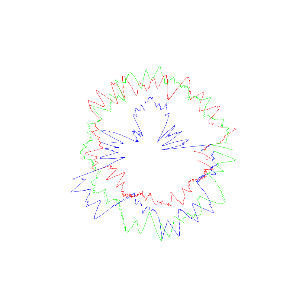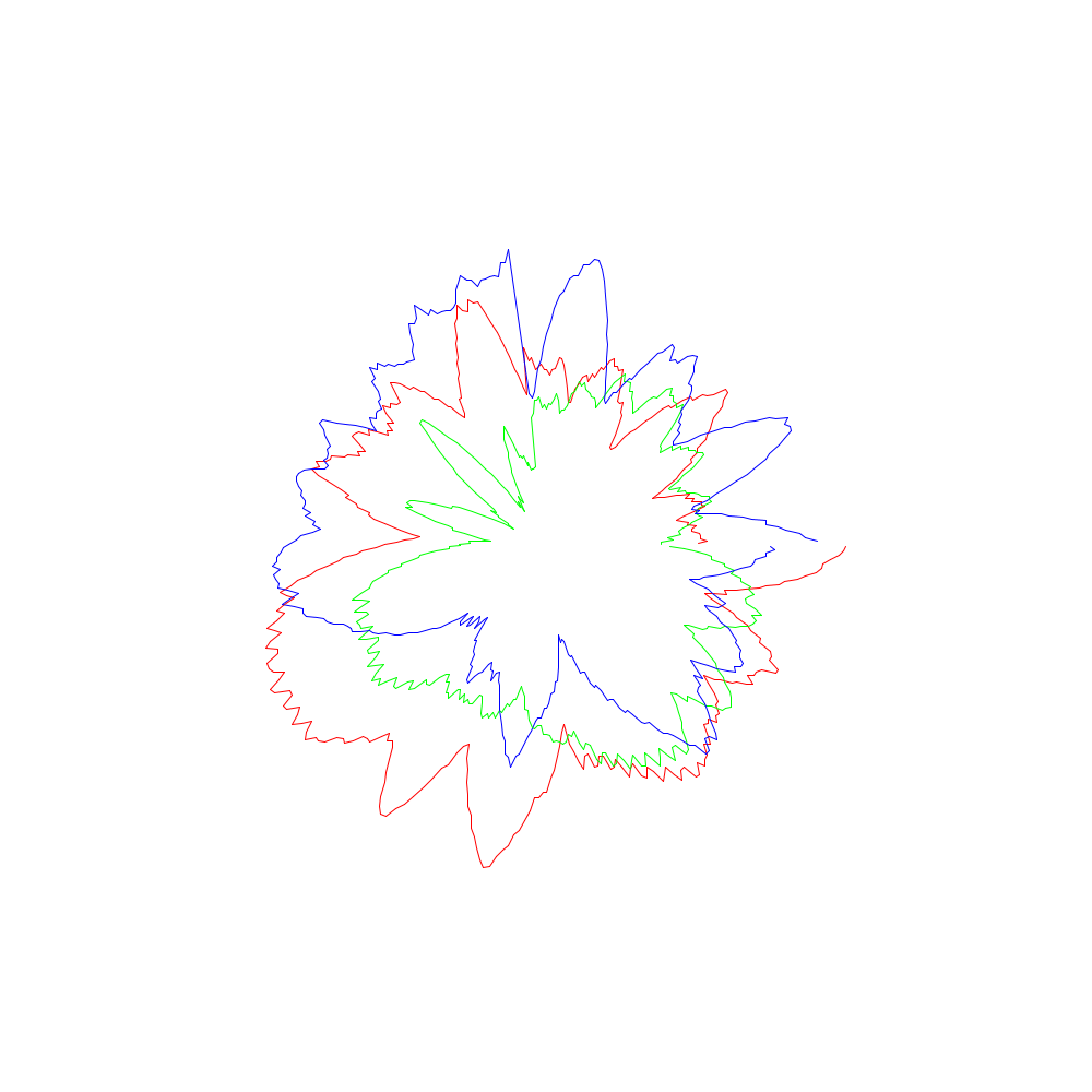 Die roten Linien entsprechen dabei den x-Koordinaten, die grünen den y- und die blauen den z-Werten.