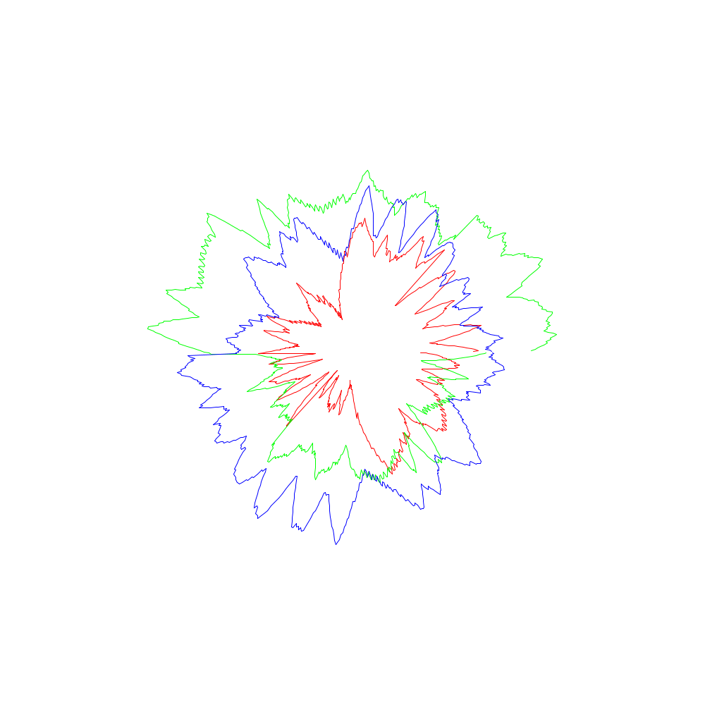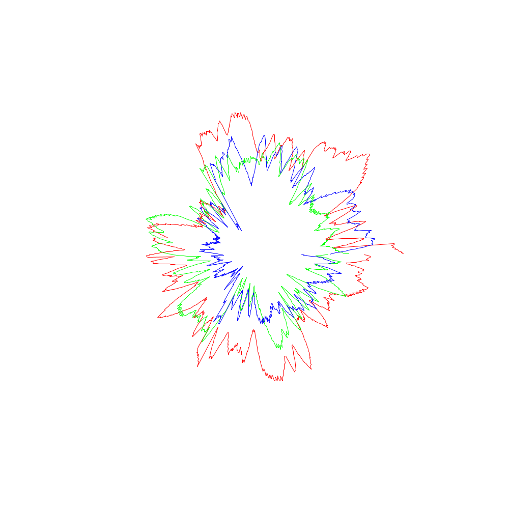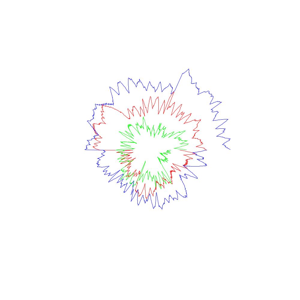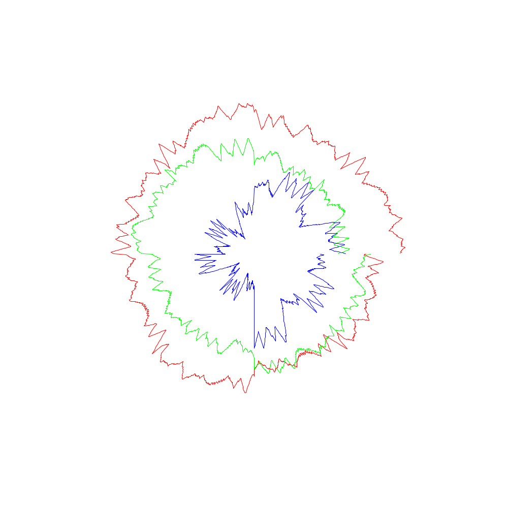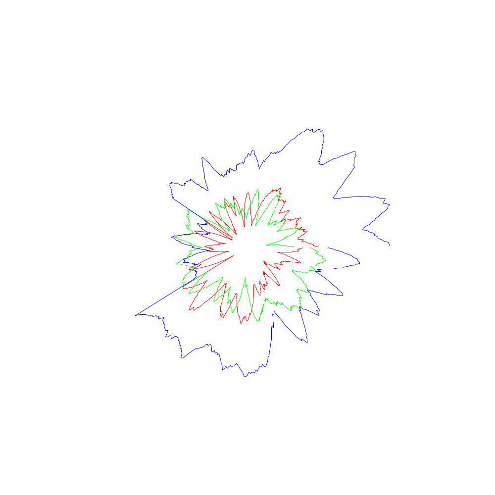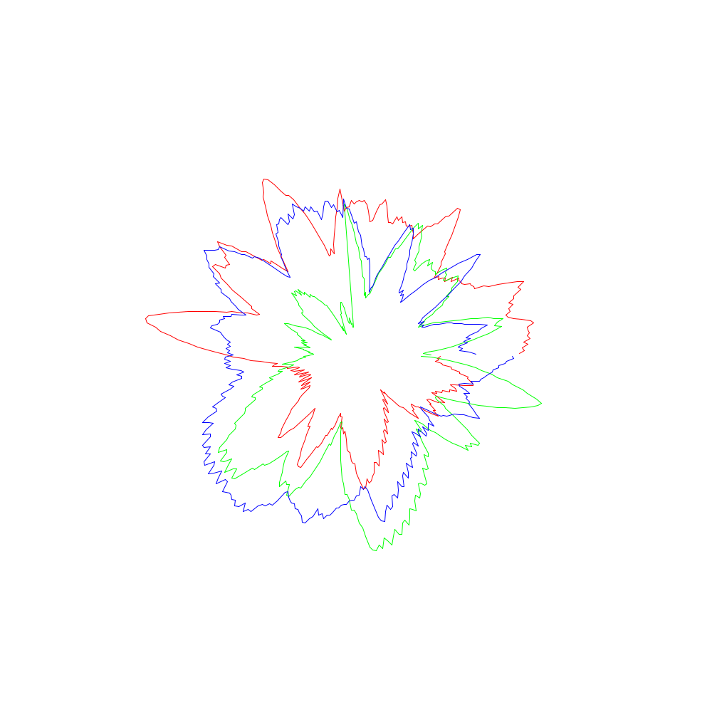 Die roten Linien entsprechen dabei den x-Koordinaten, die grünen den y- und die blauen den z-Werten.