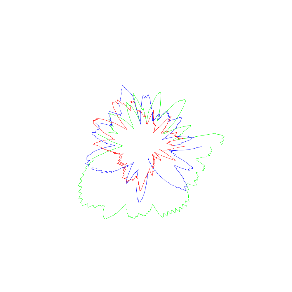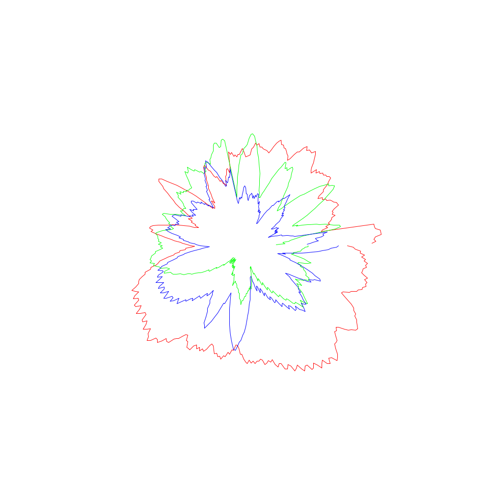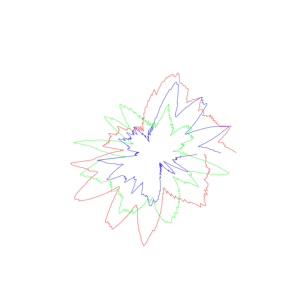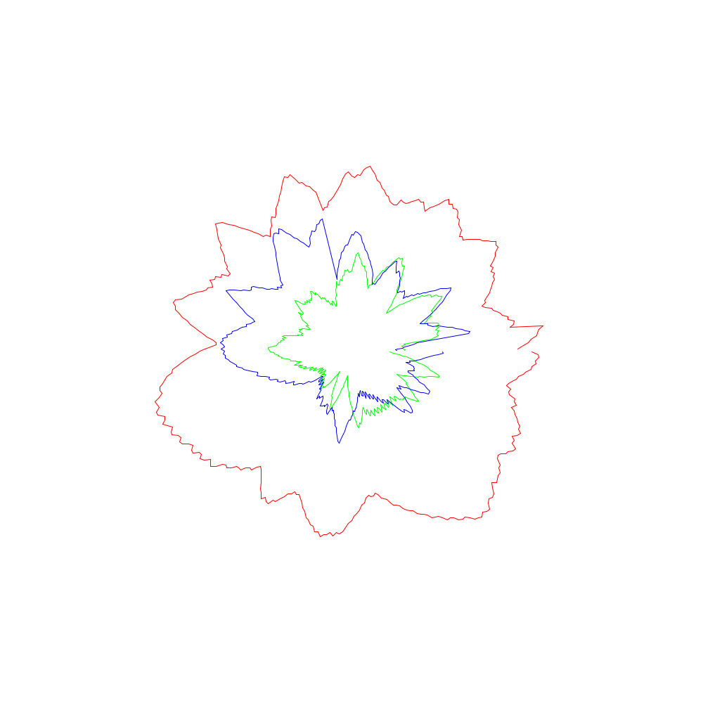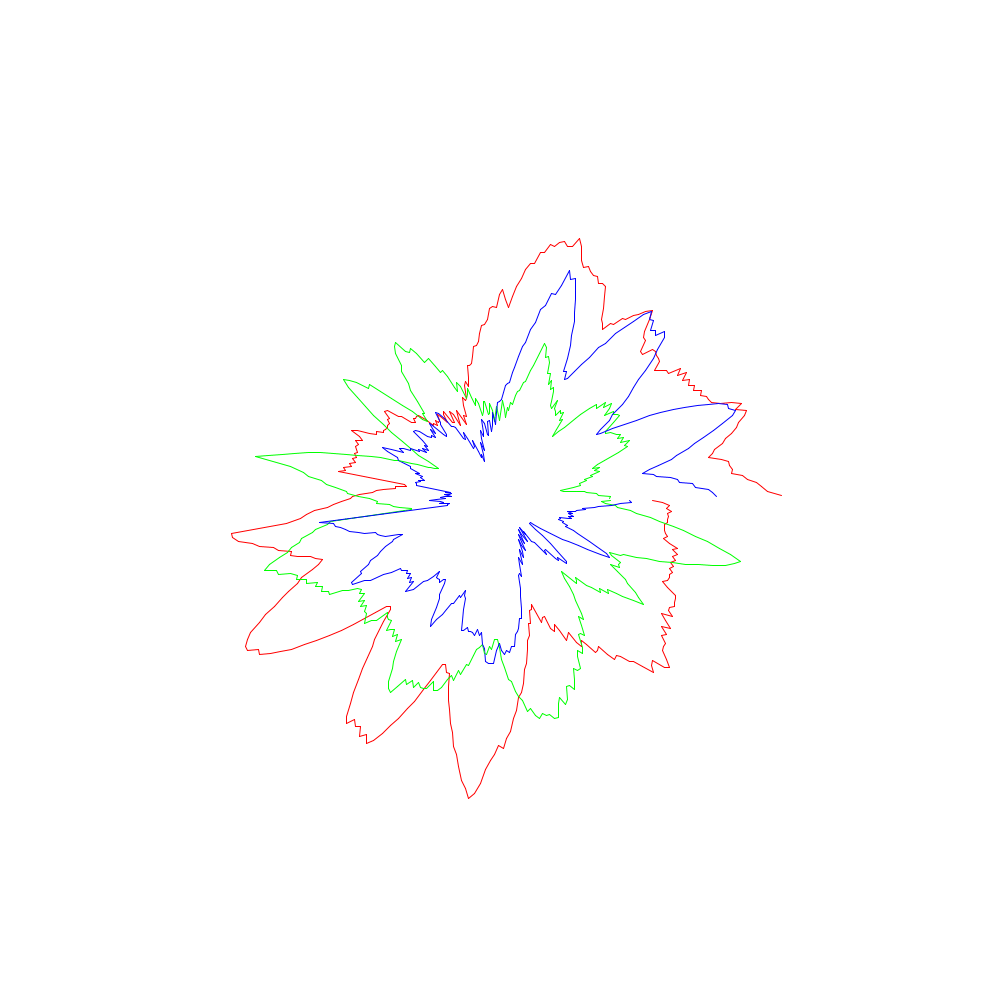 Die roten Linien entsprechen dabei den x-Koordinaten, die grünen den y- und die blauen den z-Werten.